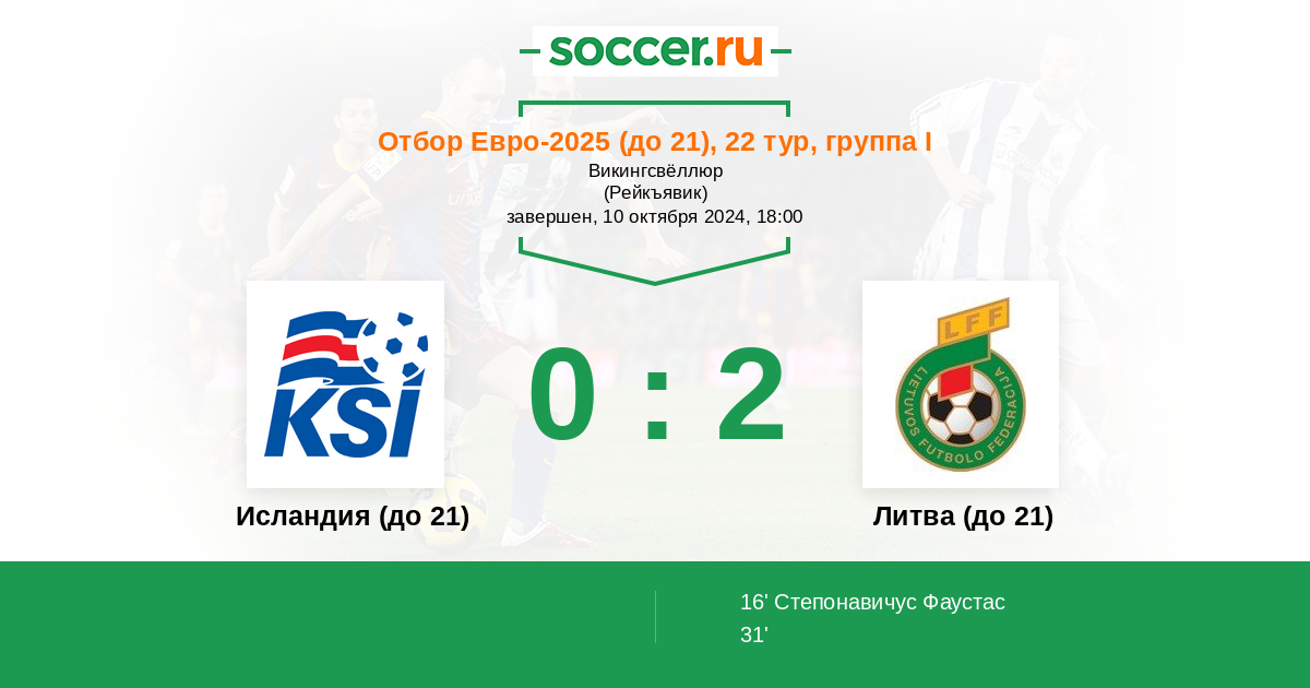 Исландия (до 21) 1:0 0:0 1:0