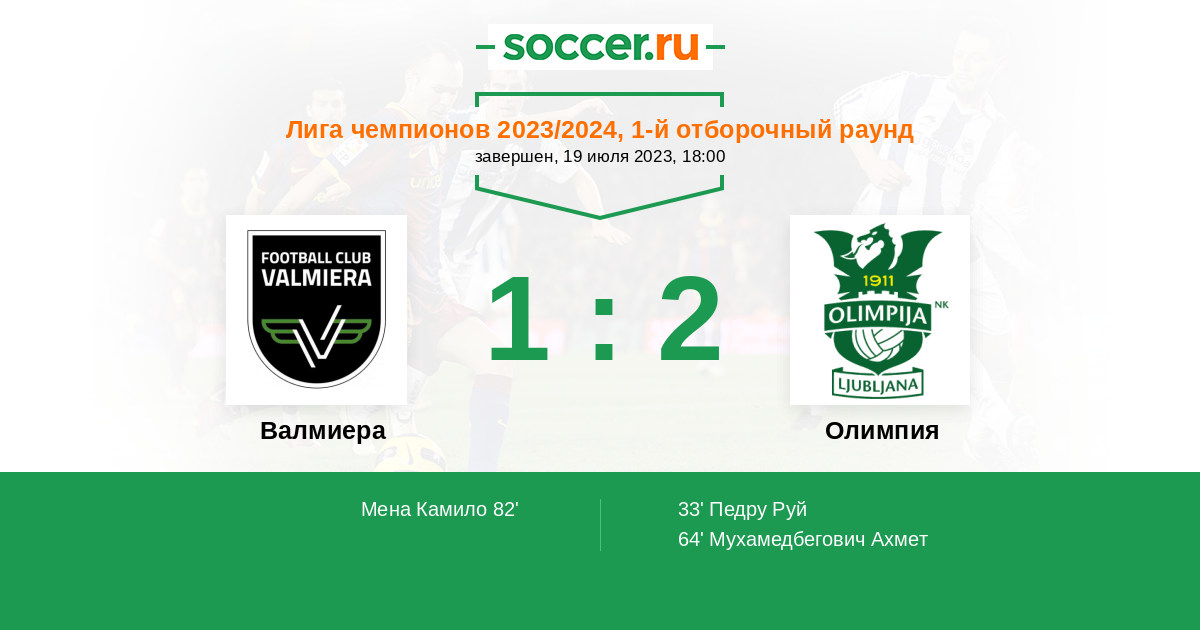 Олимпия 2:1 2:1 0:0