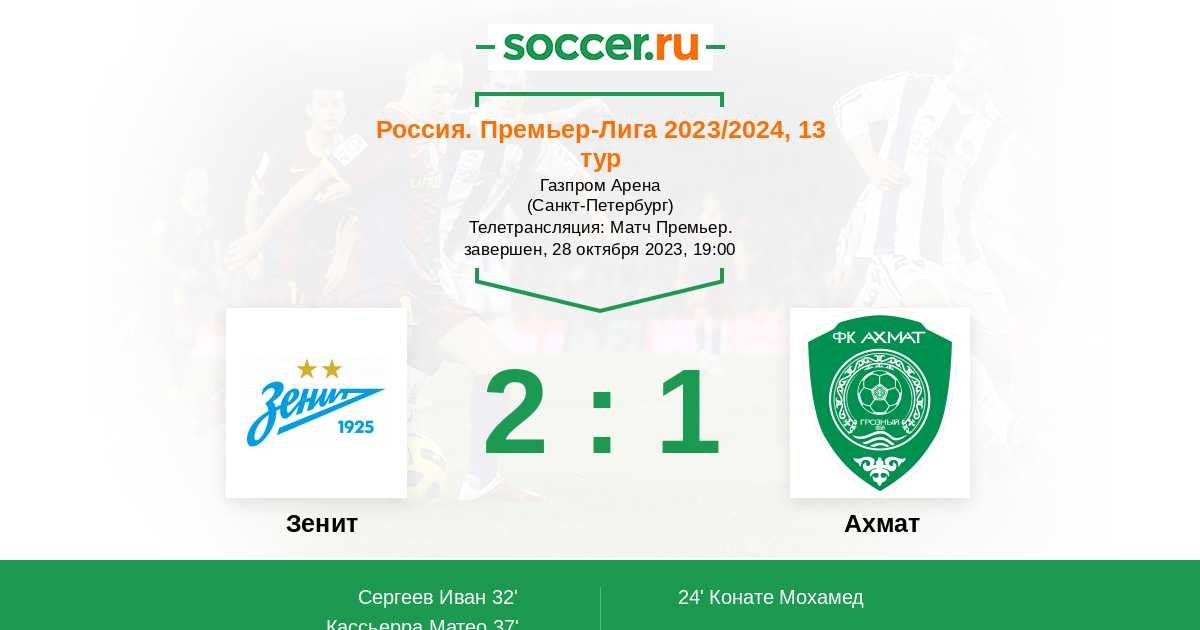 Россия. Кубок 25.07.2023 Зенит Логотип футбольный клуб Зенит (Санкт-Петербург) 2:0 Логотип футбольный клуб Ахмат (Грозный) Ахмат