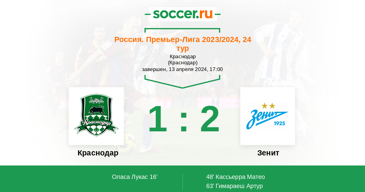 Россия. Премьер-Лига 13.04.2025 Зенит Логотип футбольный клуб Зенит (Санкт-Петербург) 4:1 Логотип футбольный клуб Краснодар Краснодар