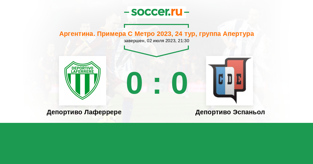 Аргентина. Примера С Метро 06.08.2022 Депортиво Лаферрере Логотип футбольный клуб Депортиво Лаферрере 0:2 Логотип футбольный клуб Депортиво Эспаньол (Буэнос-Айрес) Депортиво Эспаньол
