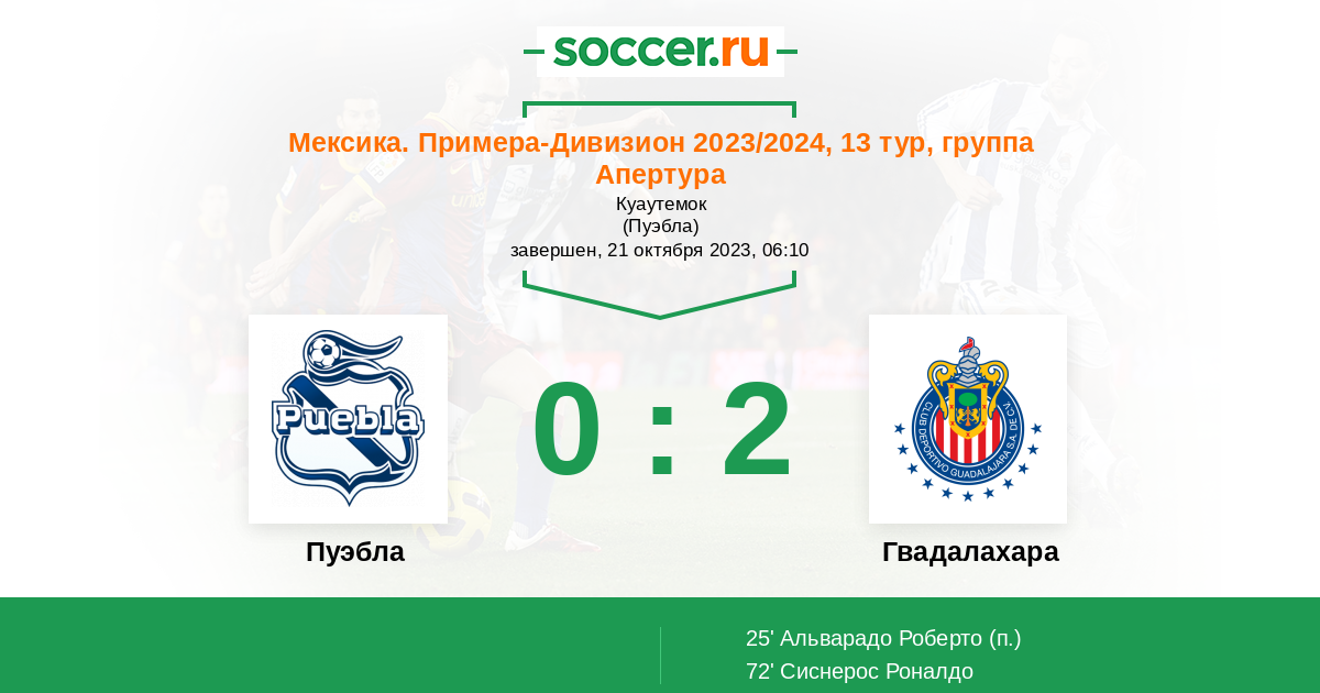 Мексика. Примера-Дивизион 11.03.2023 Пуэбла Логотип футбольный клуб Пуэбла (Пуэбла-де-Сарагоса) 1:0 Логотип футбольный клуб Гвадалахара Гвадалахара