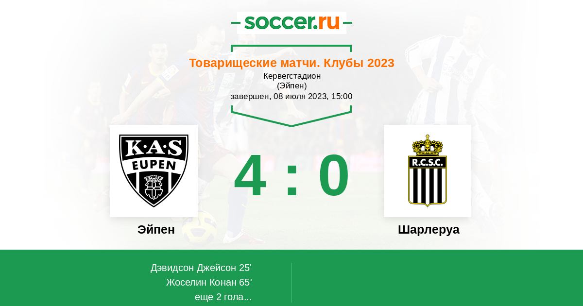 Бельгия. Про-Лига 04.08.2018 Эйпен Логотип футбольный клуб Эйпен 1:4 Логотип футбольный клуб Шарлеруа Шарлеруа