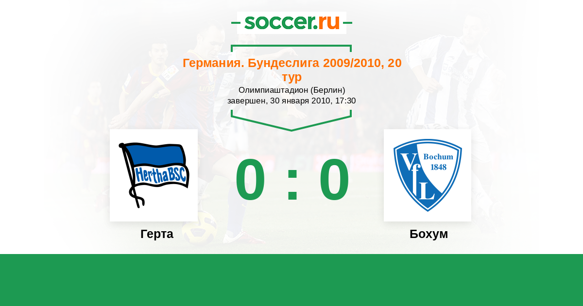 Германия. Бундеслига 09.05.2009 Герта Логотип футбольный клуб Герта (Берлин) 2:0 Логотип футбольный клуб Бохум Бохум