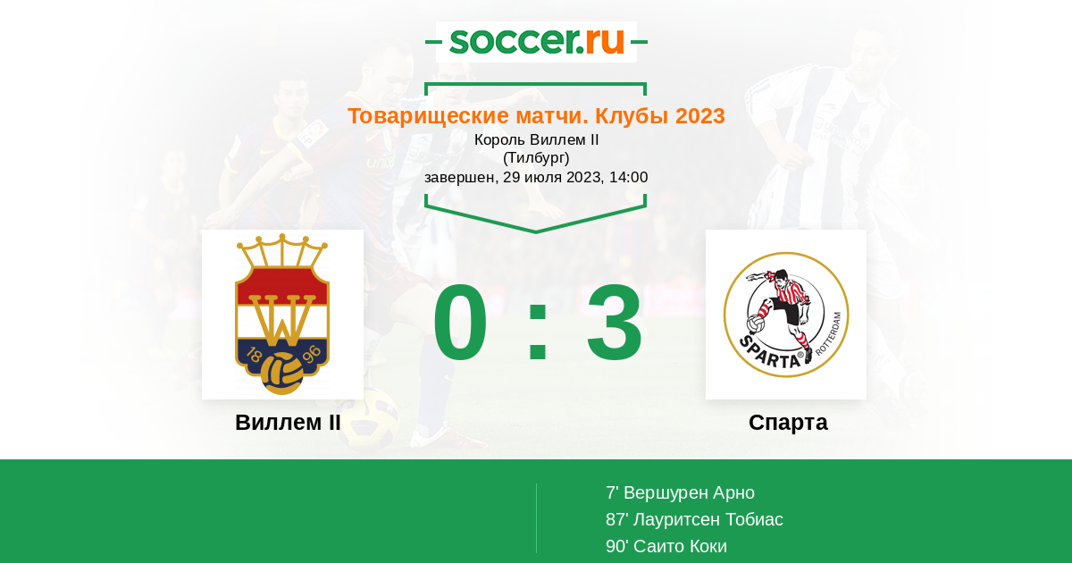 Товарищеские матчи. Клубы 27.07.2024 Виллем II Логотип футбольный клуб Виллем II (Тилбург) 2:4 Логотип футбольный клуб Спарта (Роттердам) Спарта