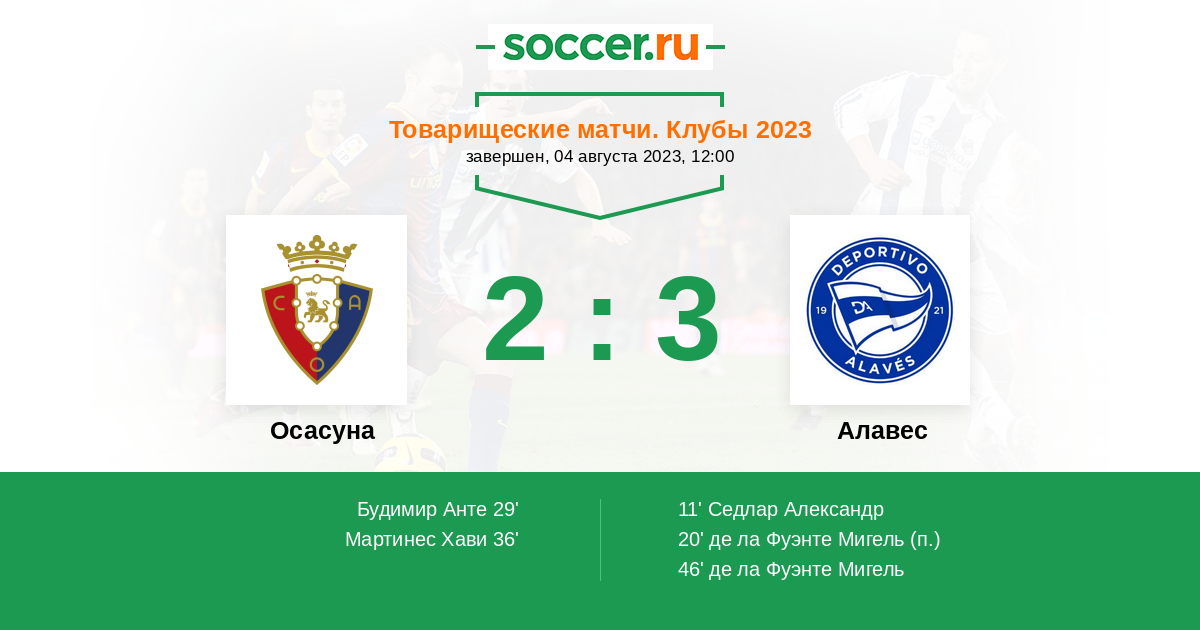 Товарищеские матчи. Клубы 10.08.2024 Алавес Логотип футбольный клуб Алавес (Витория-Гастейс) 2:1 Логотип футбольный клуб Осасуна (Памплона) Осасуна
