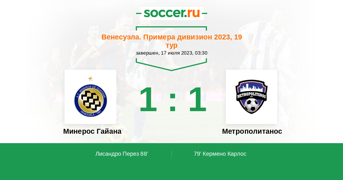Венесуэла. Примера дивизион 03.07.2021 Минерос Гайана Логотип футбольный клуб Минерос Гайана 1:0 Логотип футбольный клуб Метрополитанос (Лос-Текес) Метрополитанос