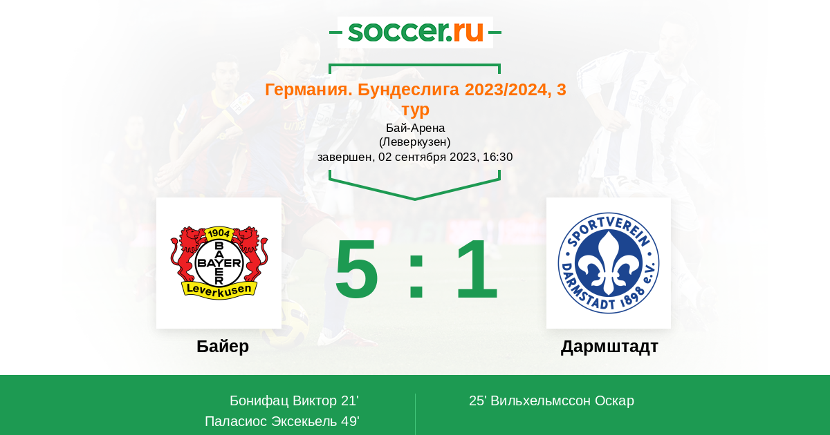В предстоящем матче 3 - го тура немецкой Бундеслиги между командами Байер Леверкузен и Дармштадт, более чем явным фаворитом на победу является команда хозяев Байер Леверкузен, так как они играют лучше.