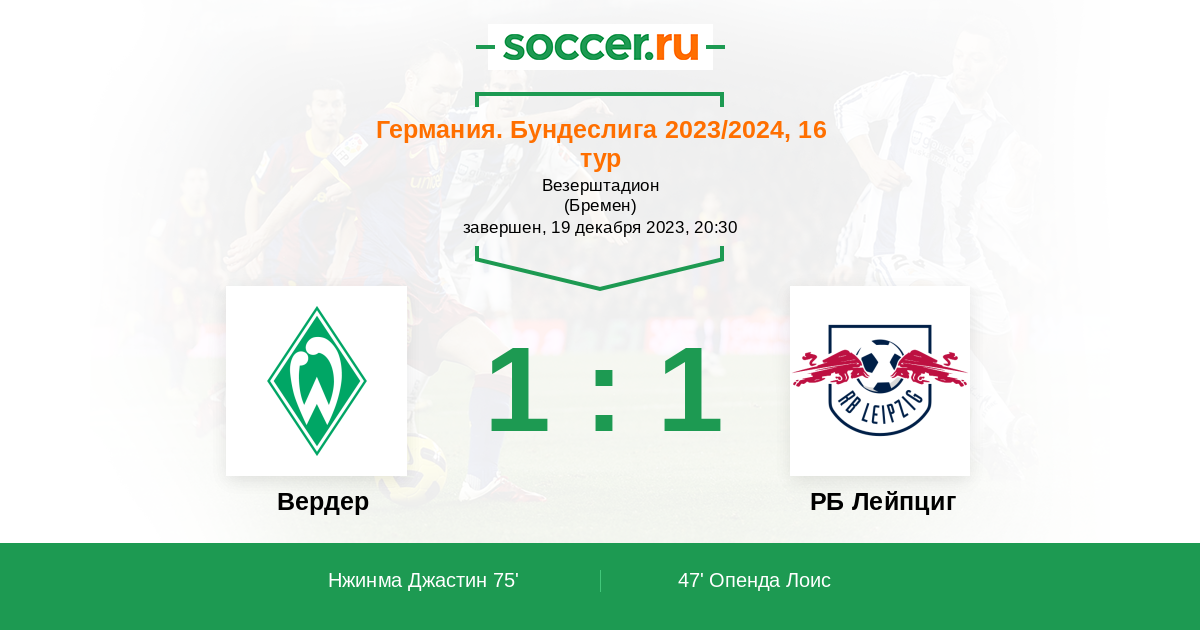 Германия. Бундеслига 12.12.2020 РБ Лейпциг Логотип футбольный клуб РБ Лейпциг 2:0 Логотип футбольный клуб Вердер (Бремен) Вердер
