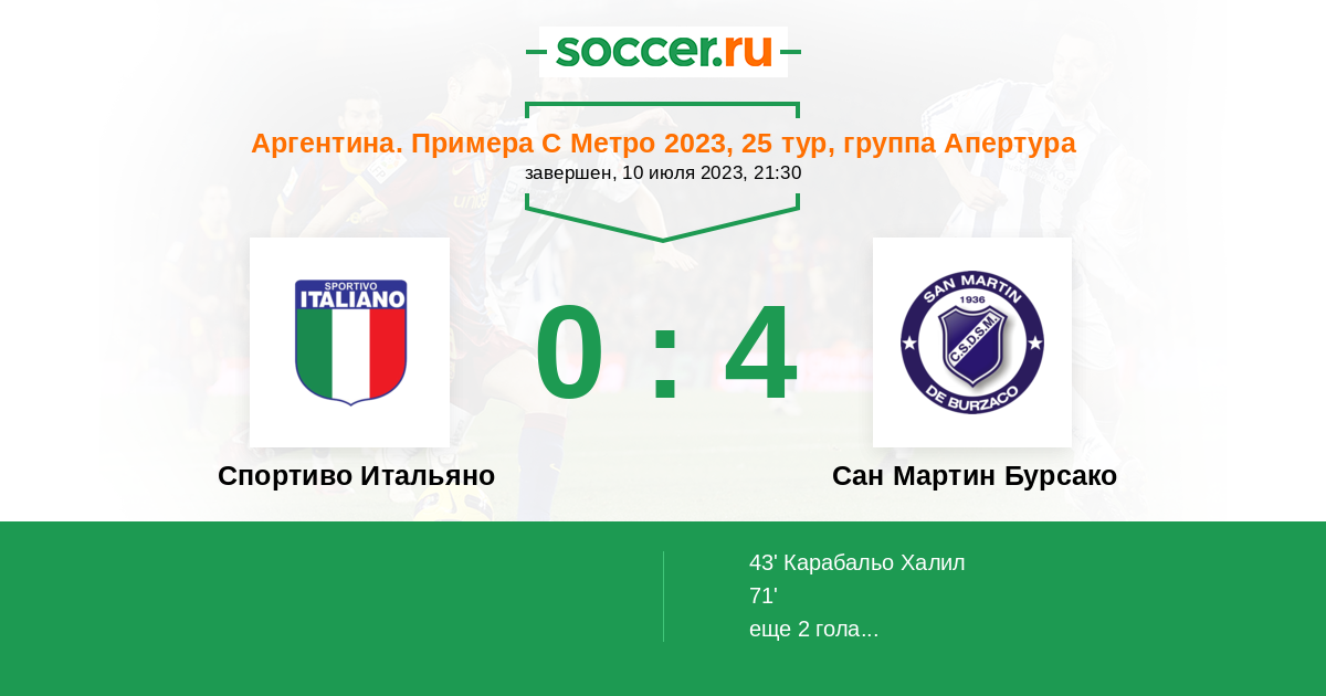 Аргентина. Примера С Метро 04.03.2023 Сан Мартин Бурсако Логотип футбольный клуб Сан Мартин Бурсако 2:1 Логотип футбольный клуб Спортиво Итальяно (Буэнос-Айрес) Спортиво Итальяно