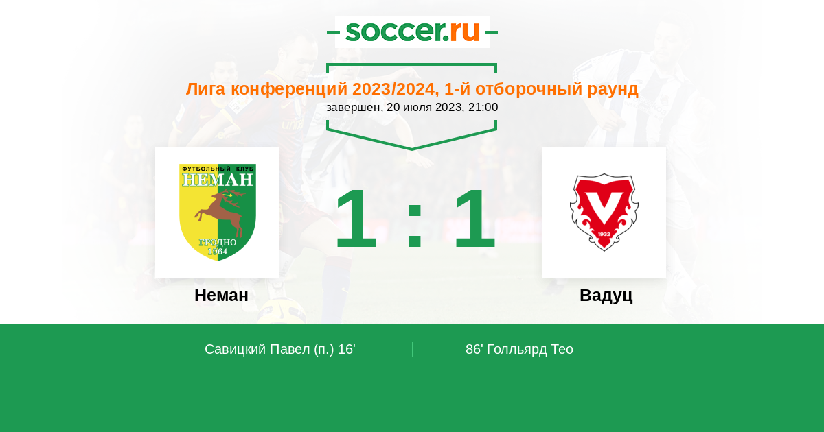 Неман - Вадуц ! Белорусы не плохо провели матч на выезде , выиграв его . Гости просто обязаны будут пойти вперёд , что бы отыграться и здесь их могут поймать на контратаках . Отдаю небольшое преимущество хозяевам поля .