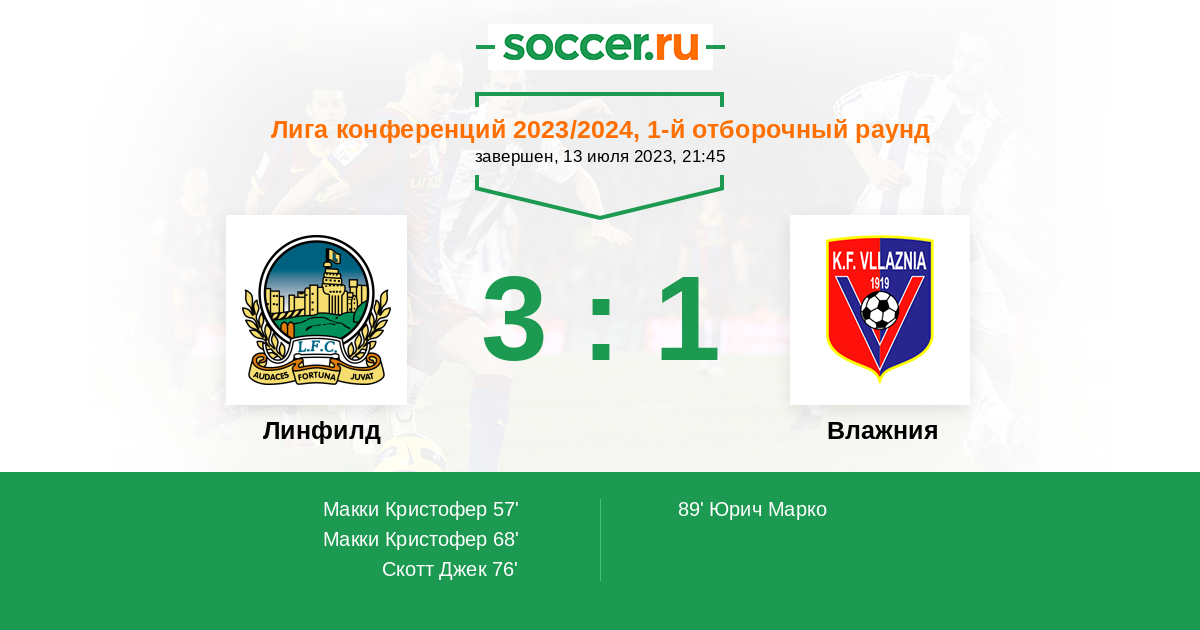 Линфилд - Влажия ! Ирландцы принимающие на своём поле албанцев , выглядят значительно сильнее соперника и думаю одержат уверенную победу . Так как на ответную встречу желательно ехать с заделом .