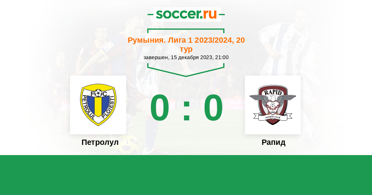 Румыния. Лига 2 11.07.2020 Петролул Логотип футбольный клуб Петролул (Плоешти) 0:0 Логотип футбольный клуб Рапид (Бухарест) Рапид