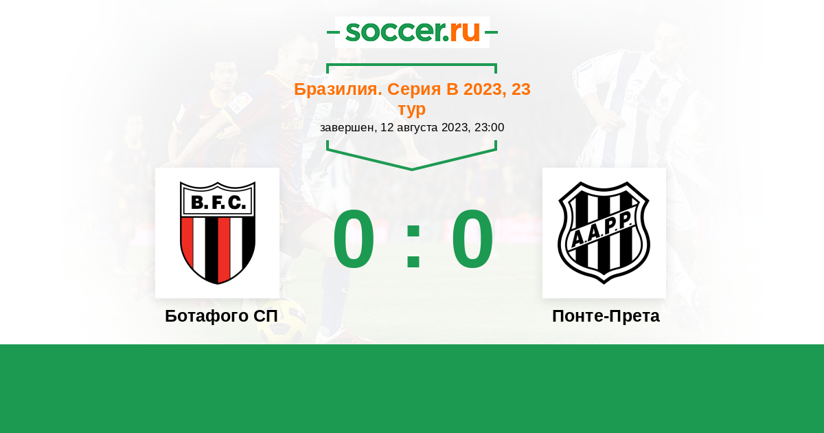 Бразилия. Серия В 03.05.2023 Понте-Прета Логотип футбольный клуб Понте-Прета (Кампинас) 2:0 Логотип футбольный клуб Ботафого СП (Рибейран-Прету) Ботафого СП