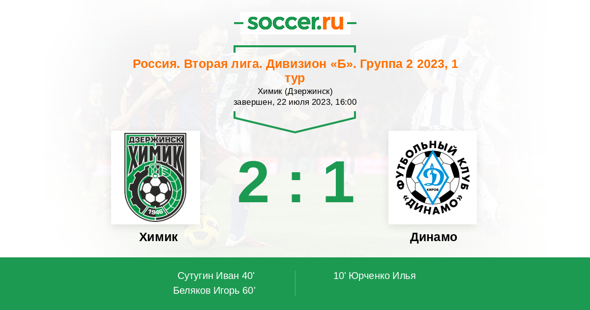 Россия. Вторая лига. Группа 4 24.06.2011 Химик Логотип футбольный клуб Химик (Дзержинск) 2:0 Логотип футбольный клуб Динамо Киров Динамо Киров