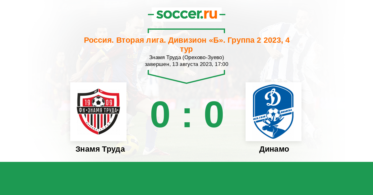 Россия. Вторая лига. Группа 2 24.10.2022 Знамя Труда Логотип футбольный клуб Знамя Труда (Орехово-Зуево) 1:2 Логотип футбольный клуб Динамо Вологда Динамо Вологда