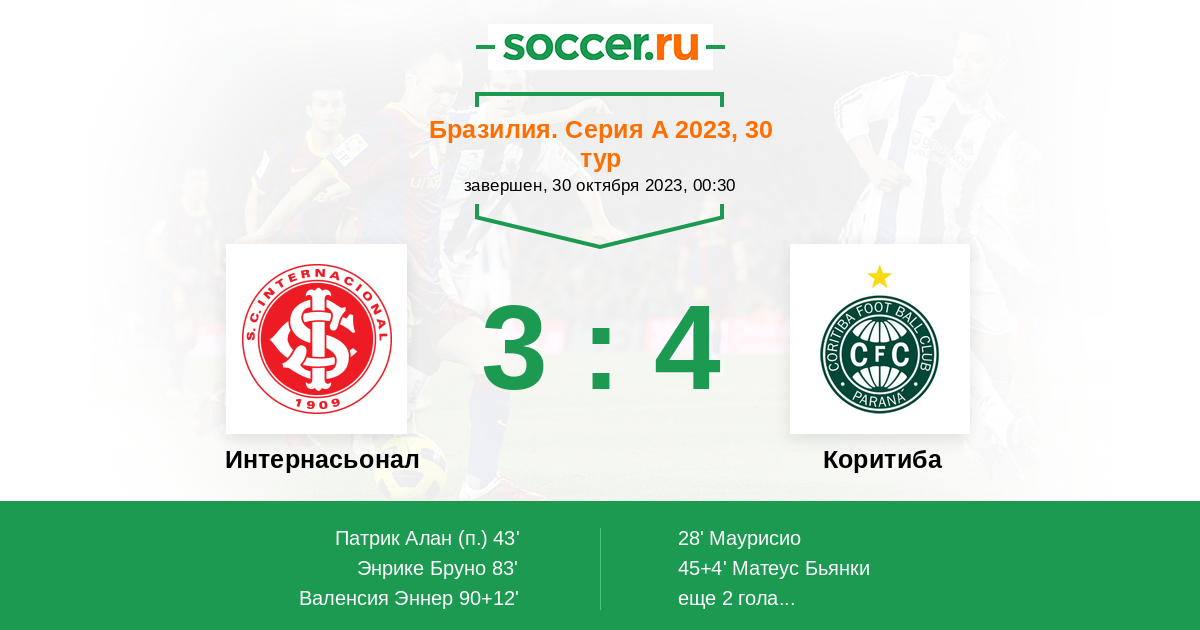 Бразилия. Серия А 24.10.2022 Коритиба Логотип футбольный клуб Коритиба 1:1 Логотип футбольный клуб Интернасьонал (Порту-Алегри) Интернасьонал