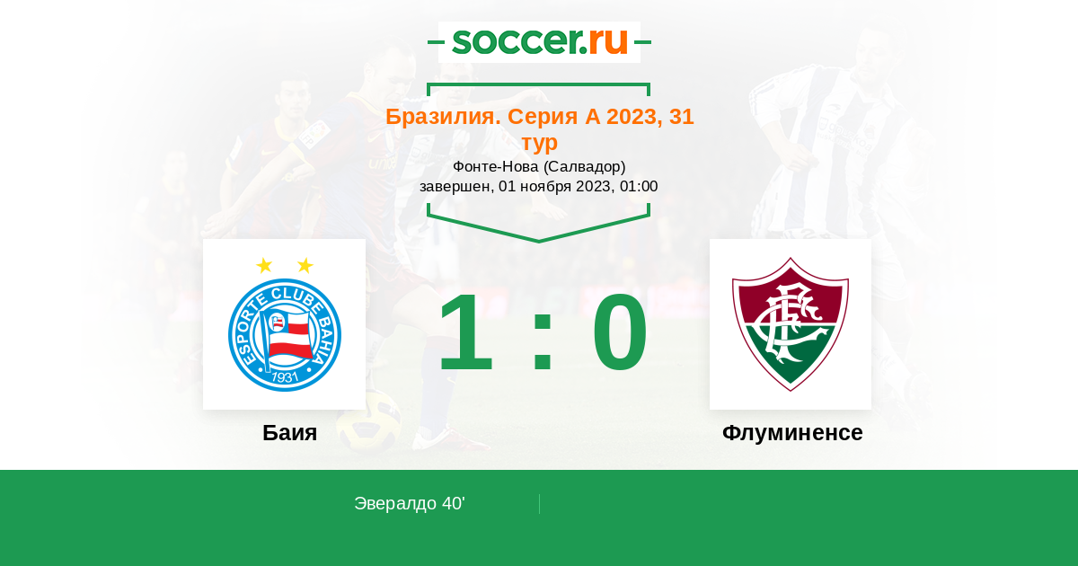 Бразилия. Серия А 13.10.2019 Флуминенсе Логотип футбольный клуб Флуминенсе (Рио-де-Жанейро) 2:0 Логотип футбольный клуб Баия (Салвадор) Баия