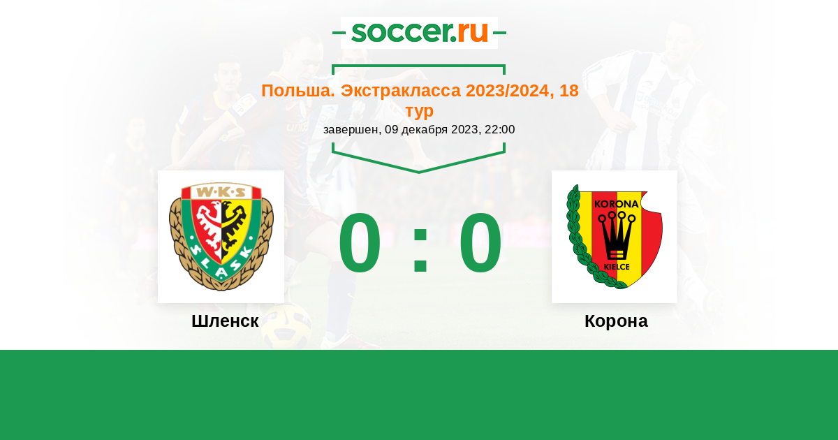 Польша. Экстракласса 16.12.2018 Шленск Логотип футбольный клуб Шленск (Вроцлав) 1:1 Логотип футбольный клуб Корона (Кельце) Корона