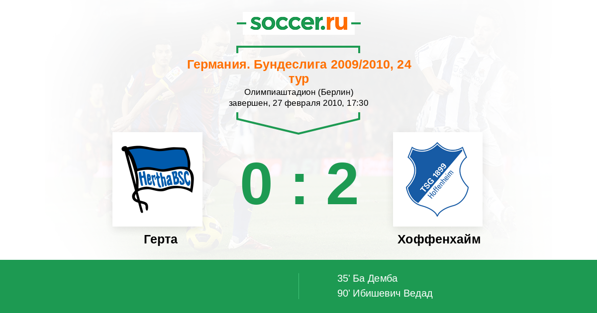 Германия. Бундеслига 24.04.2009 Хоффенхайм Логотип футбольный клуб Хоффенхайм (Зинсхайм) 0:1 Логотип футбольный клуб Герта (Берлин) Герта