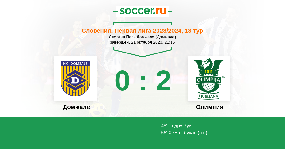 Словения. Кубок 23.10.2013 Олимпия Логотип футбольный клуб Олимпия (Любляна) 2:0 Логотип футбольный клуб Домжале Домжале