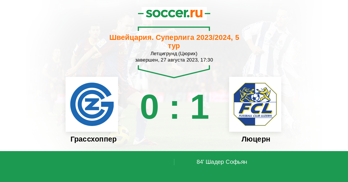 Швейцария. Суперлига 05.11.2023 Люцерн Логотип футбольный клуб Люцерн 2:0 Логотип футбольный клуб Грассхоппер (Цюрих) Грассхоппер