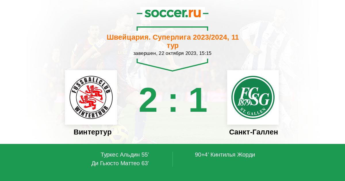 Швейцария. Суперлига 11.11.2023 Санкт-Галлен Логотип футбольный клуб Санкт-Галлен 4:2 Логотип футбольный клуб Винтертур Винтертур