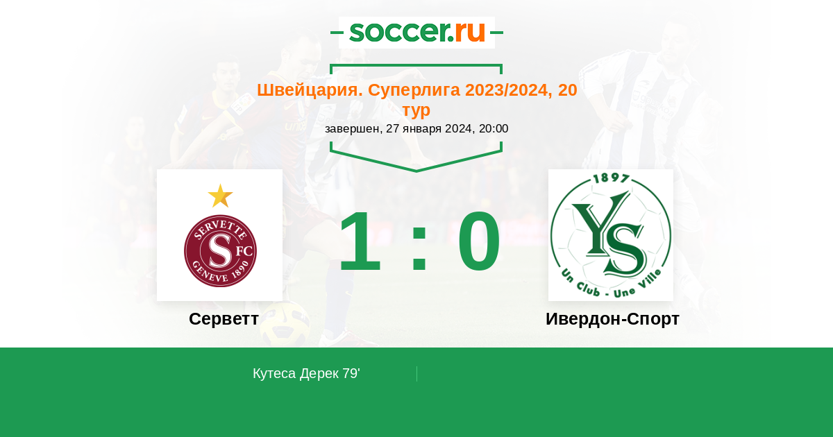 Швейцария. Суперлига 11.02.2024 Ивердон-Спорт Логотип футбольный клуб Ивердон-Спорт (Ивердон-ле-Бен) 2:1 Логотип футбольный клуб Серветт (Женева) Серветт