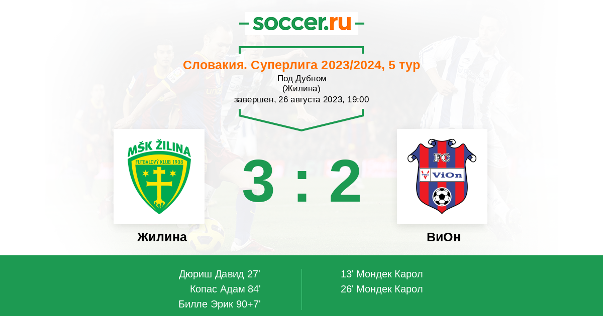 Словакия. Суперлига 26.07.2015 Жилина Логотип футбольный клуб Жилина 5:1 Логотип футбольный клуб ВиОн (Злате-Моравце) ВиОн