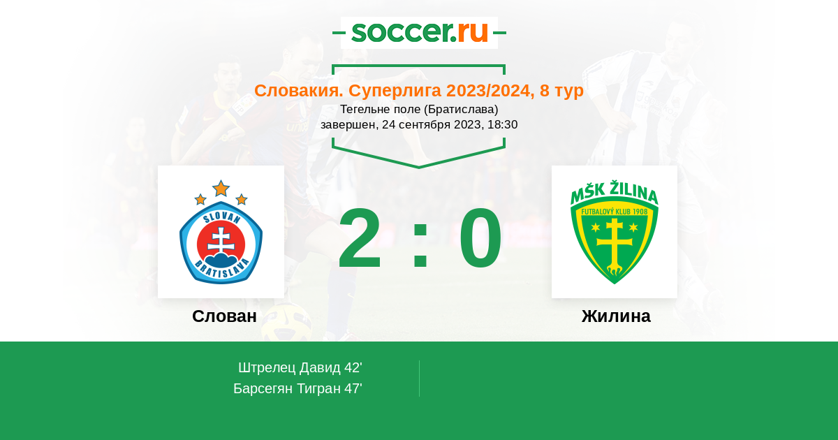 Словакия. Суперлига 16.09.2009 Слован Логотип футбольный клуб Слован (Братислава) 2:1 Логотип футбольный клуб Жилина Жилина