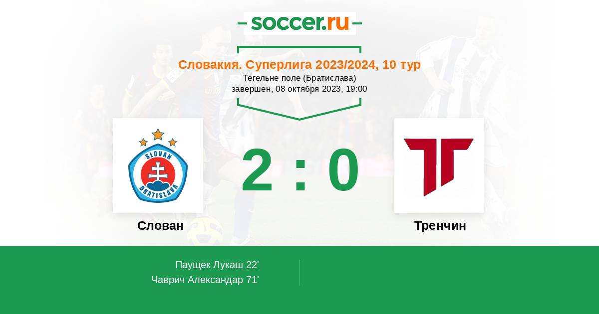 Словакия. Суперлига 31.07.2021 Слован Логотип футбольный клуб Слован (Братислава) 2:0 Логотип футбольный клуб Тренчин Тренчин