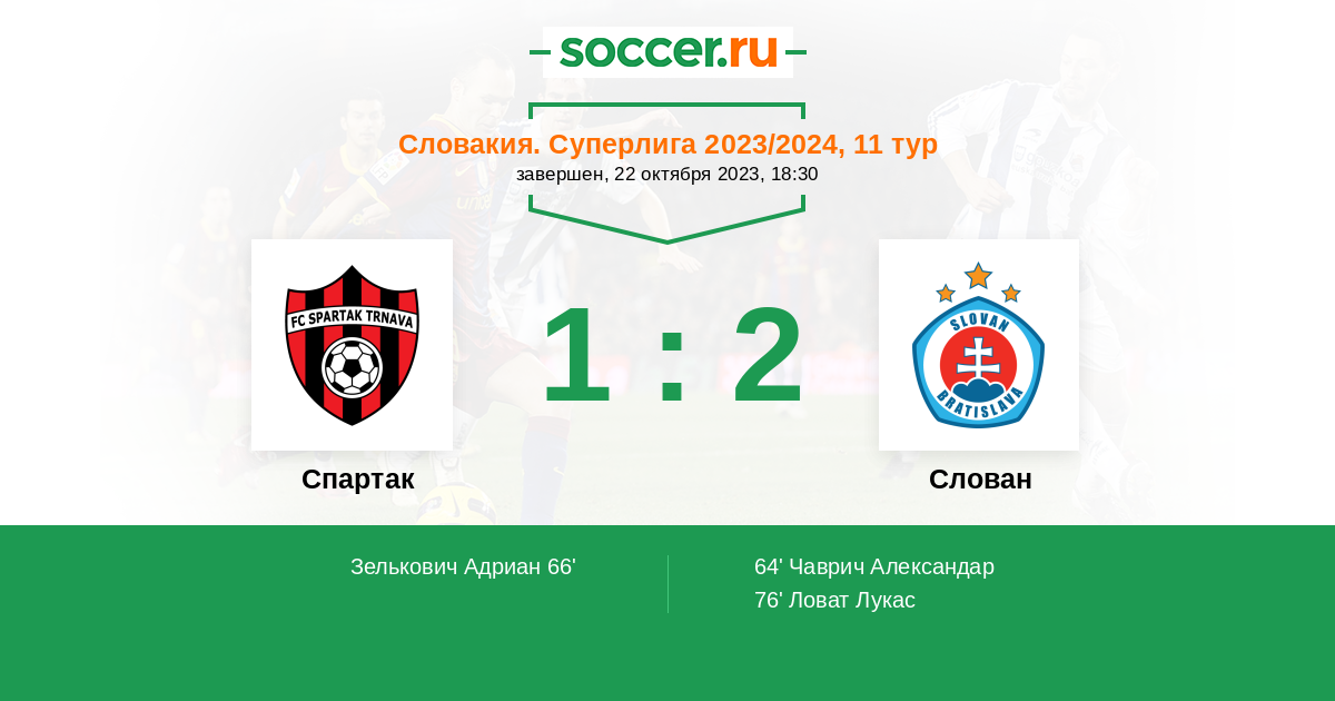 Словакия. Суперлига 04.03.2023 Слован Логотип футбольный клуб Слован (Братислава) 4:1 Логотип футбольный клуб Спартак (Трнава) Спартак