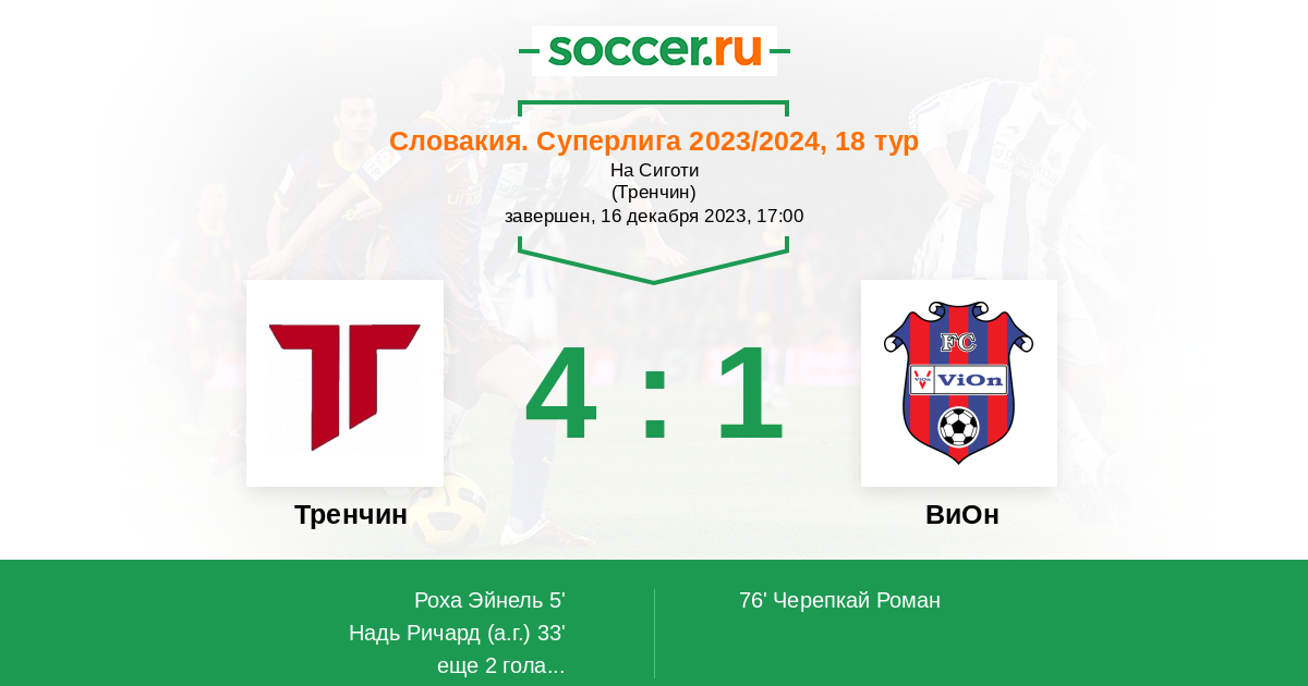 Словакия. Суперлига 15.04.2023 Тренчин Логотип футбольный клуб Тренчин 2:1 Логотип футбольный клуб ВиОн (Злате-Моравце) ВиОн