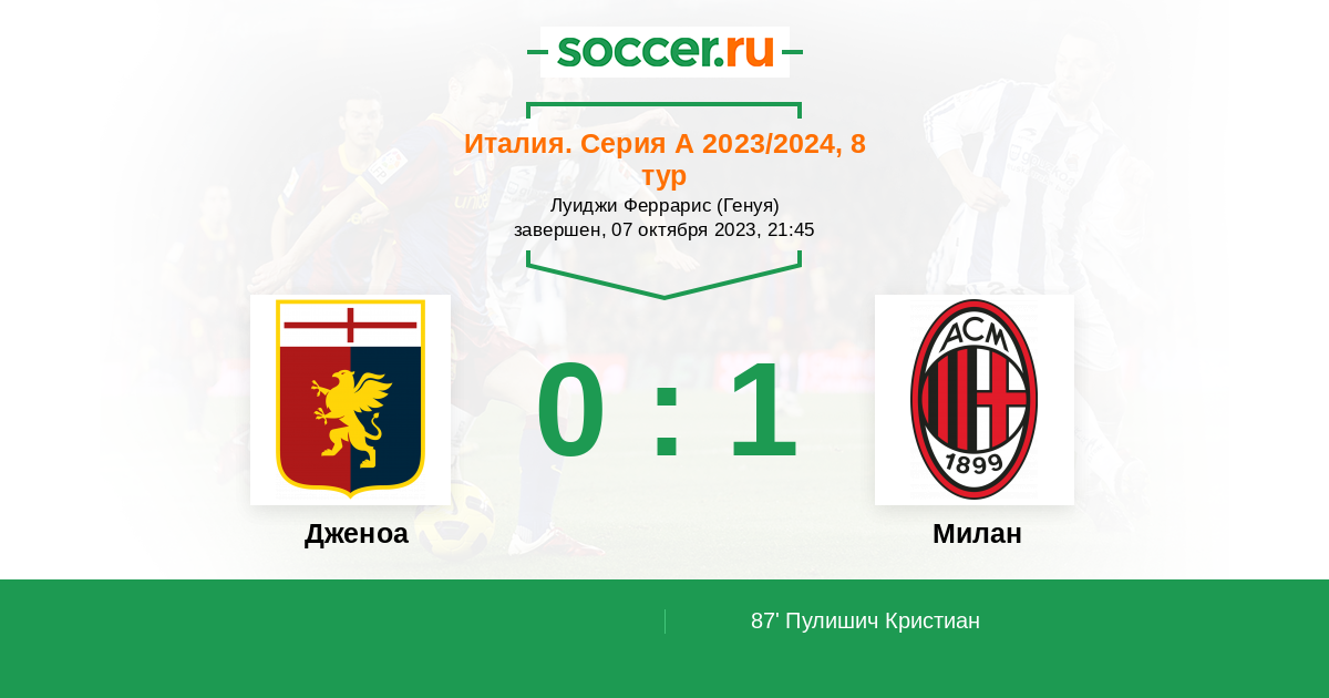 Италия. Серия А 08.01.2026 Милан Логотип футбольный клуб Милан 1:1 Логотип футбольный клуб Дженоа (Генуя) Дженоа