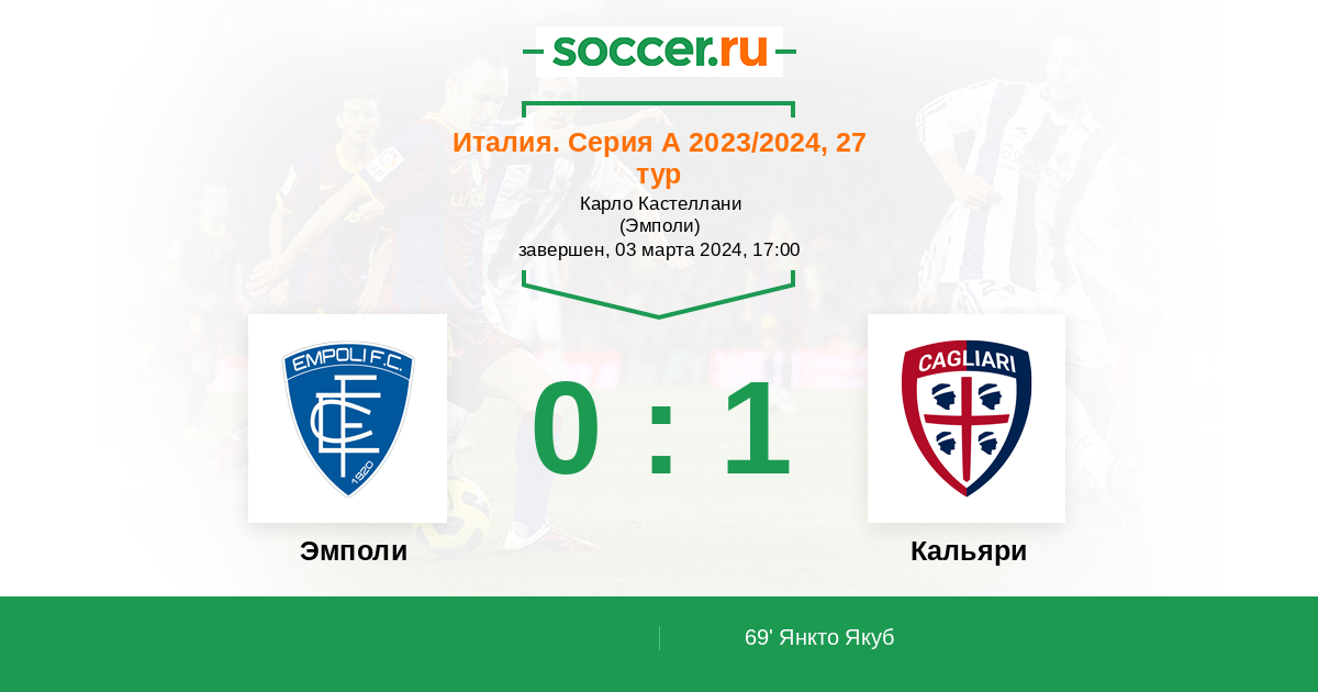 Италия. Серия А 30.12.2023 Кальяри Логотип футбольный клуб Кальяри 0:0 Логотип футбольный клуб Эмполи Эмполи