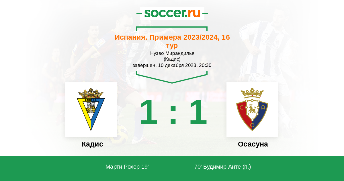 Стадион Нуэво Мирандилья (Кадис), зрителей: 18356
