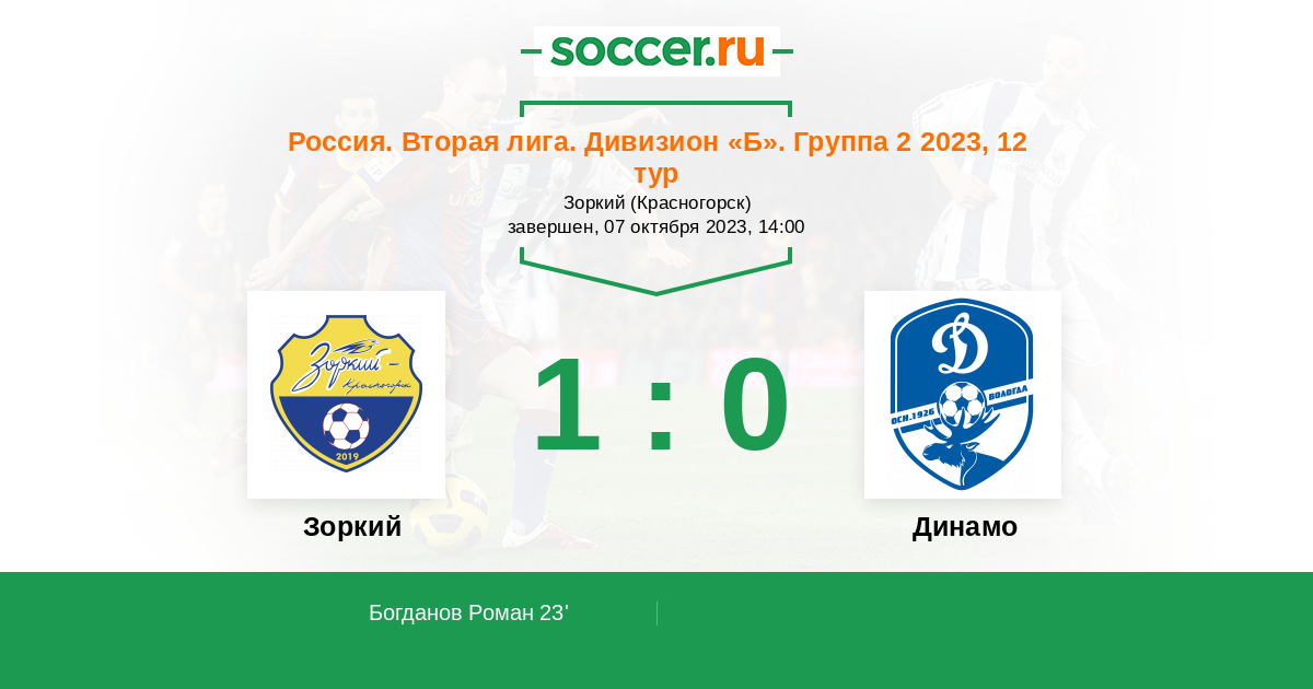 Россия. Вторая лига. Группа 2 06.05.2023 Зоркий Логотип футбольный клуб Зоркий (Красногорск) 3:1 Логотип футбольный клуб Динамо Вологда Динамо Вологда