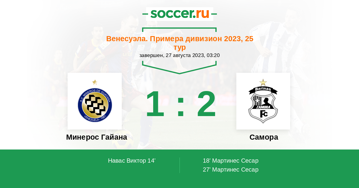 Венесуэла. Примера дивизион 30.03.2014 Минерос Гайана Логотип футбольный клуб Минерос Гайана 4:2 Логотип футбольный клуб Замора (Баринас) Замора
