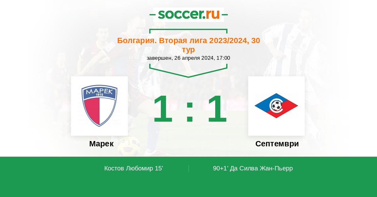Болгария. Вторая лига 31.07.2021 Марек Логотип футбольный клуб Марек (Дупница) 2:1 Логотип футбольный клуб Септември (София) Септември