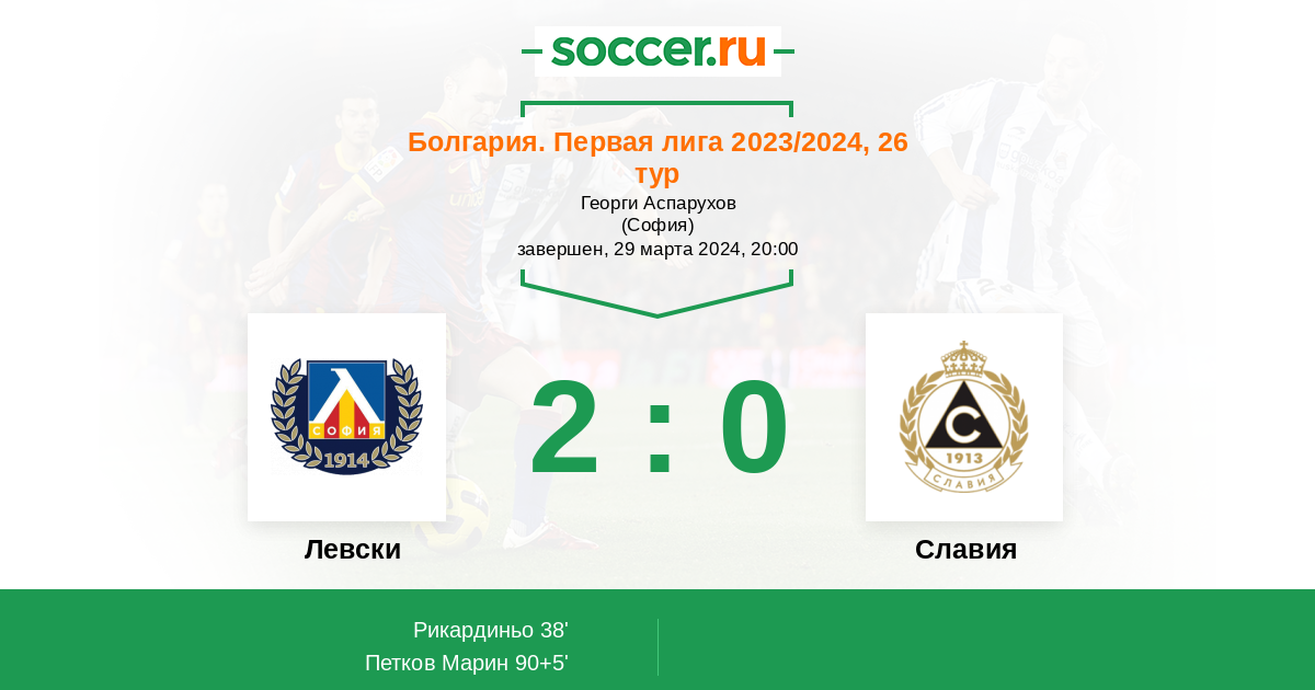 Болгария. Первая лига 21.03.2021 Левски Логотип футбольный клуб Левски (София) 1:0 Логотип футбольный клуб Славия (София) Славия