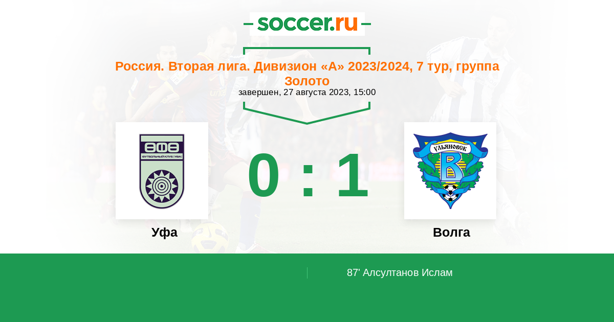 Россия. Вторая лига. Дивизион «А» 22.10.2023 Волга Логотип футбольный клуб Волга (Ульяновск) 0:3 Логотип футбольный клуб Уфа Уфа