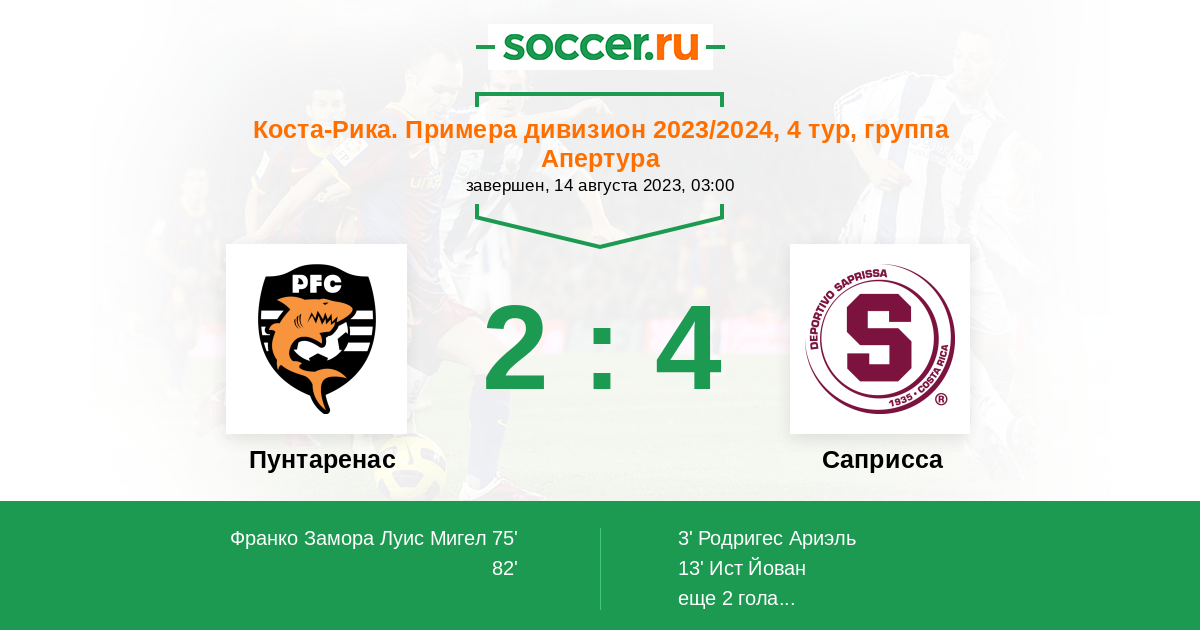 Коста-Рика. Примера дивизион 30.03.2014 Пунтаренас Логотип футбольный клуб Пунтаренас 1:1 Логотип футбольный клуб Саприсса (Сан Хосе) Саприсса
