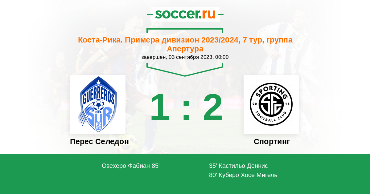 Коста-Рика. Примера дивизион 18.03.2023 Спортинг Сан-Хосе Логотип футбольный клуб Спортинг Сан-Хосе 2:1 Логотип футбольный клуб Зеледон (Сан Исидро де Эль Хенерал) Зеледон