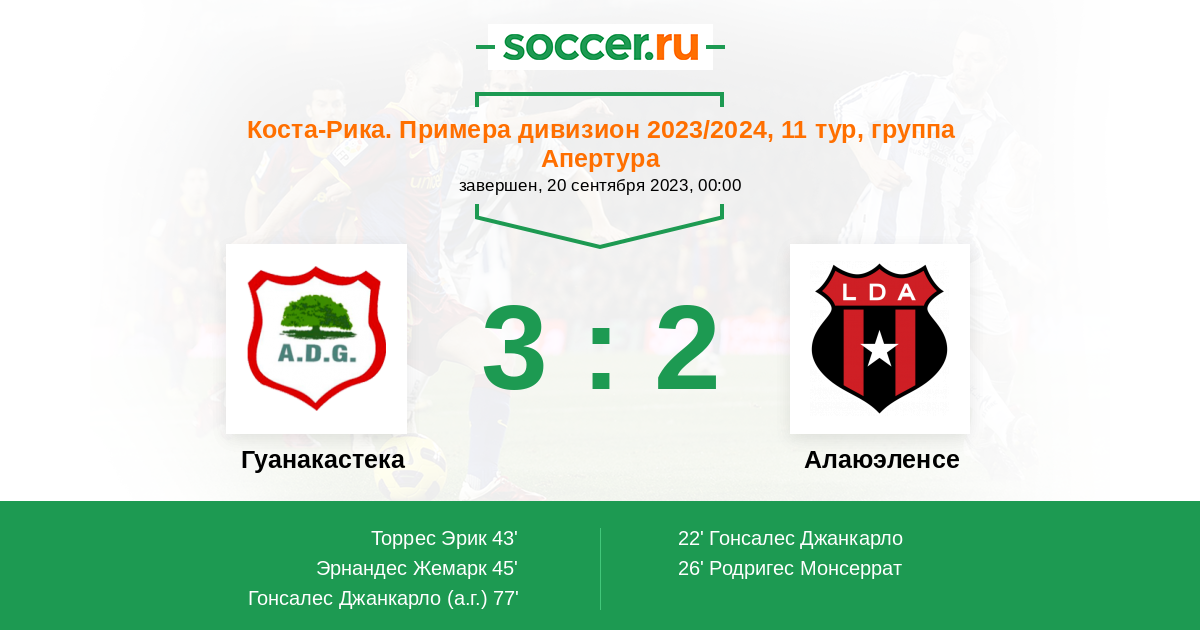 Коста-Рика. Примера дивизион 25.03.2023 Алаюэленсе Логотип футбольный клуб Алаюэленсе (Алаюэла) 2:0 Логотип футбольный клуб Гуанакастека (Никойя) Гуанакастека