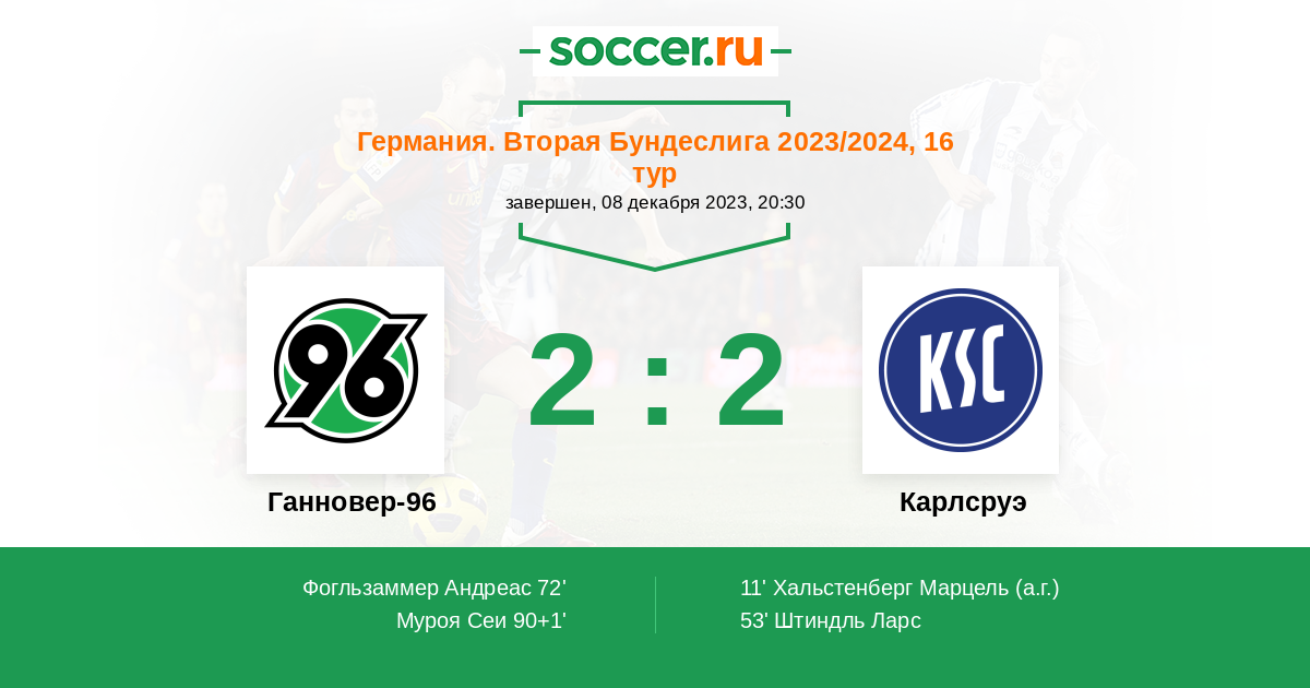 Германия. Бундеслига 2 02.11.2024 Ганновер-96 Логотип футбольный клуб Ганновер-96 2:1 Логотип футбольный клуб Карлсруэ Карлсруэ