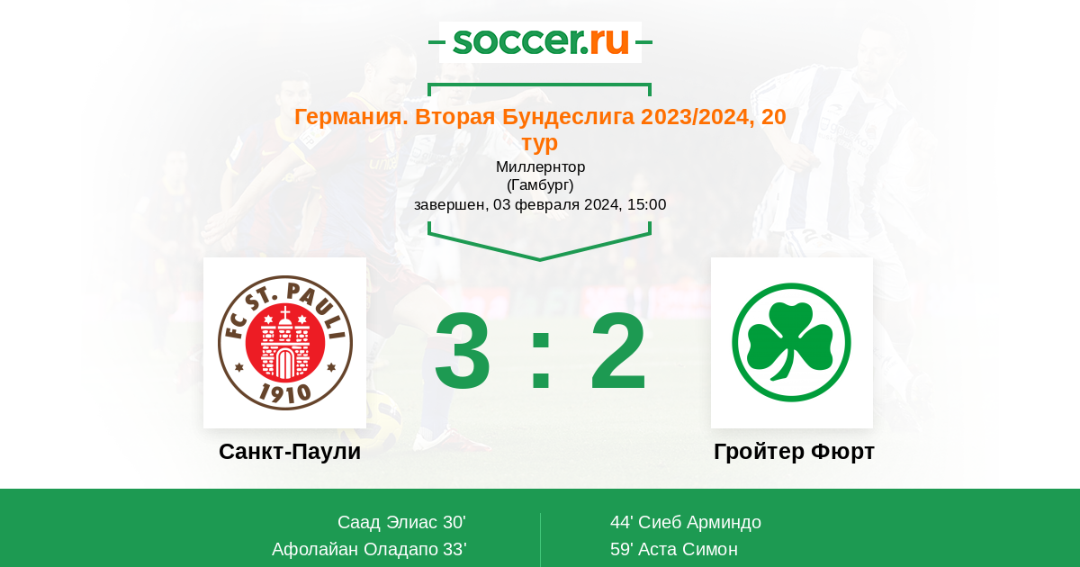 Германия. Бундеслига 2 11.03.2023 Санкт-Паули Логотип футбольный клуб Санкт-Паули (Гамбург) 2:1 Логотип футбольный клуб Гройтер Фюрт Гройтер Фюрт