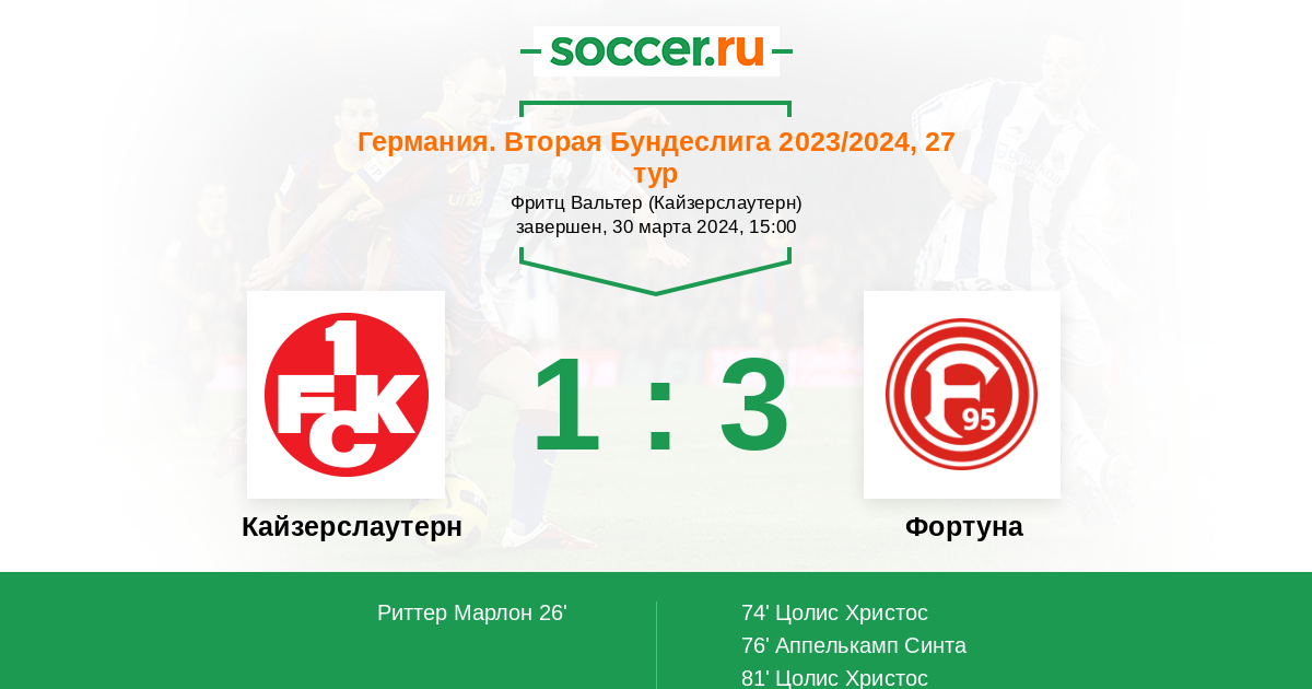 Германия. Бундеслига 2 29.03.2025 Кайзерслаутерн Логотип футбольный клуб Кайзерслаутерн 3:1 Логотип футбольный клуб Фортуна (Дюссельдорф) Фортуна