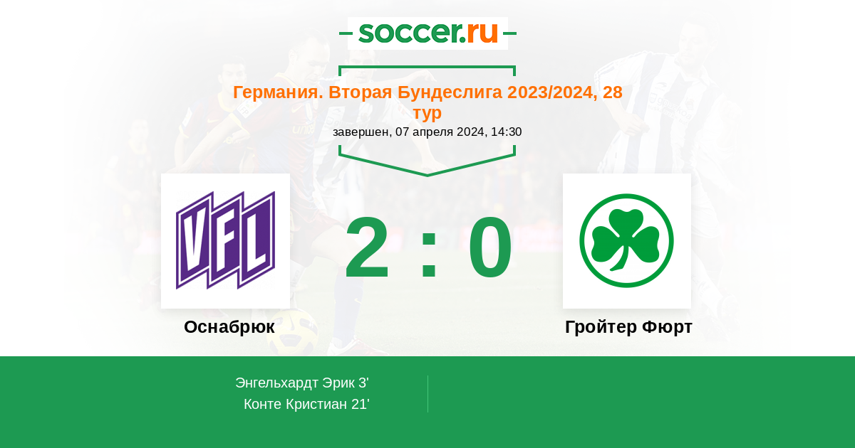Германия. Бундеслига 2 27.10.2023 Гройтер Фюрт Логотип футбольный клуб Гройтер Фюрт 4:0 Логотип футбольный клуб Оснабрюк Оснабрюк