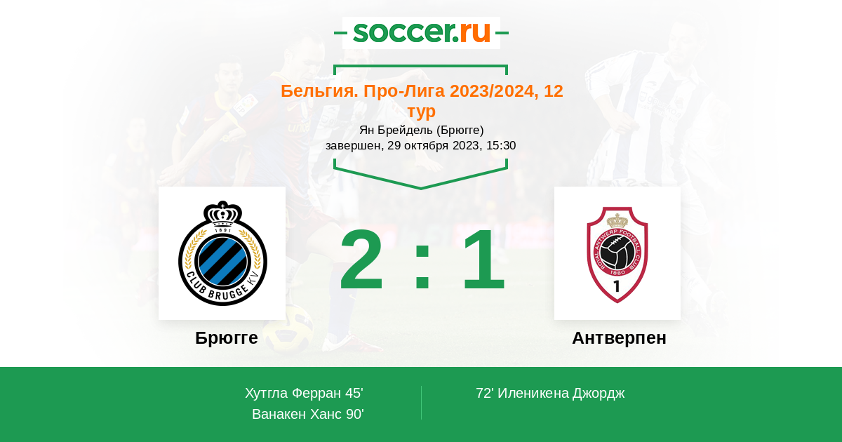 Бельгия. Про-Лига 04.02.2024 Антверпен Логотип футбольный клуб Антверпен 2:1 Логотип футбольный клуб Брюгге Брюгге