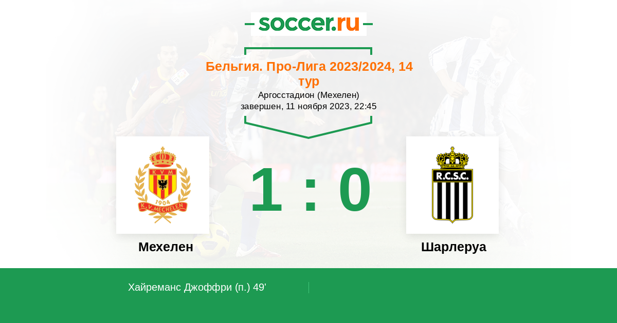 Бельгия. Про-Лига 16.03.2014 Мехелен Логотип футбольный клуб Мехелен 0:3 Логотип футбольный клуб Шарлеруа Шарлеруа
